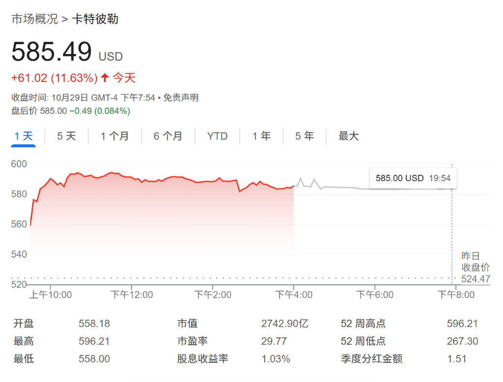 受益于AI怒潮“工程机械龙头”卡特彼勒业绩超预
